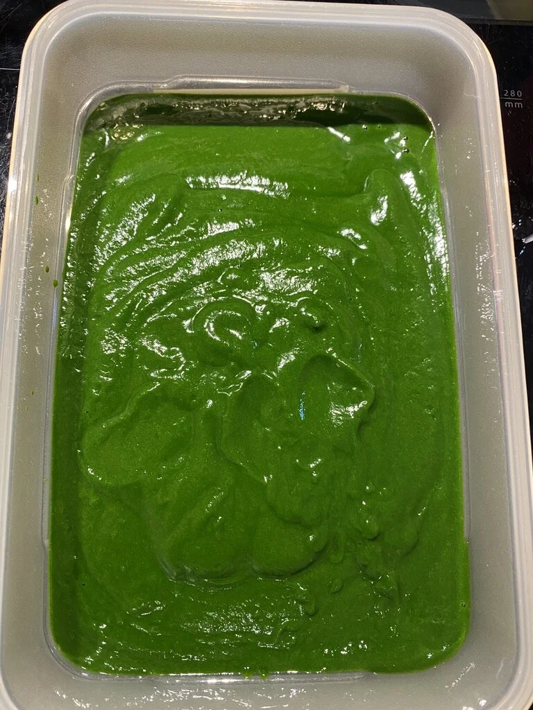 Voilà la purée non équeutée. J’ai laissé cuire une minute de plus (donc 4 dans l’eau bouillante salée) mais ca ressort hyper bien, très lisse, très vert. Donc je n’équeuterai plus jamais mes pousses d’épinard (attention ca ne s’applique qu’aux pousses, si vous avez des feuilles d’épinard de 15 cm il faut équeuter).