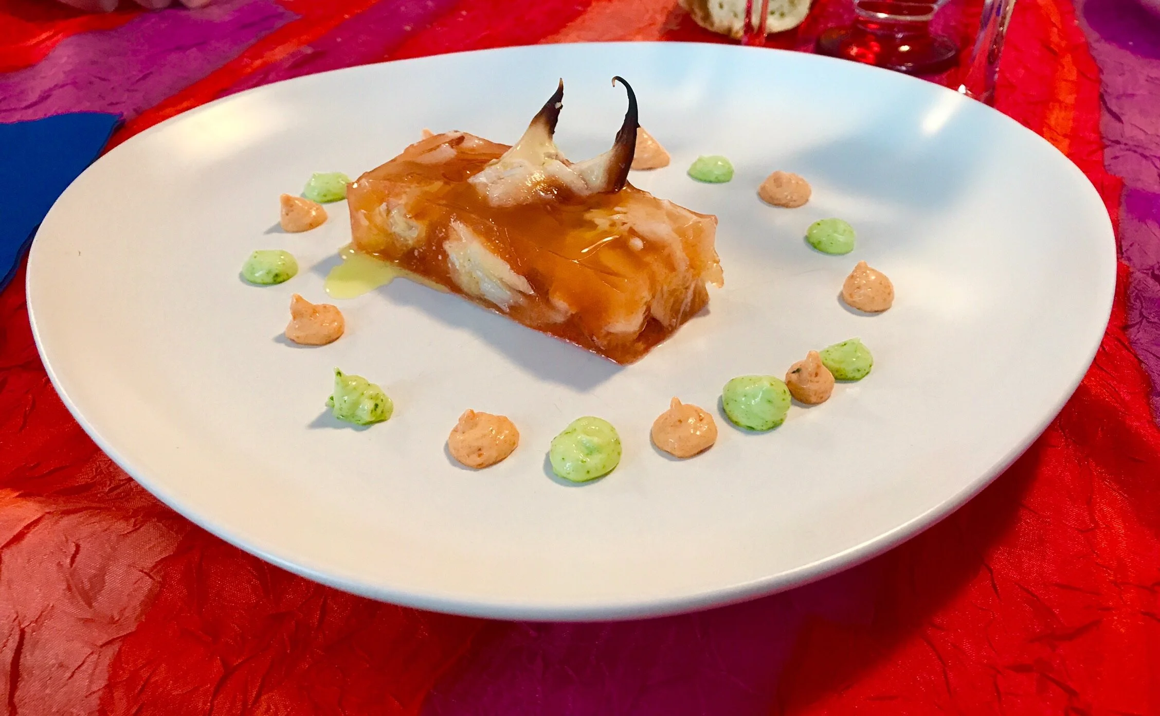 Tourteau de Roscoff en gelée d’eau de tomate verte Green Zebra, “mayo” infusée estragon et corail d’Eric Frechon*** - 9/10