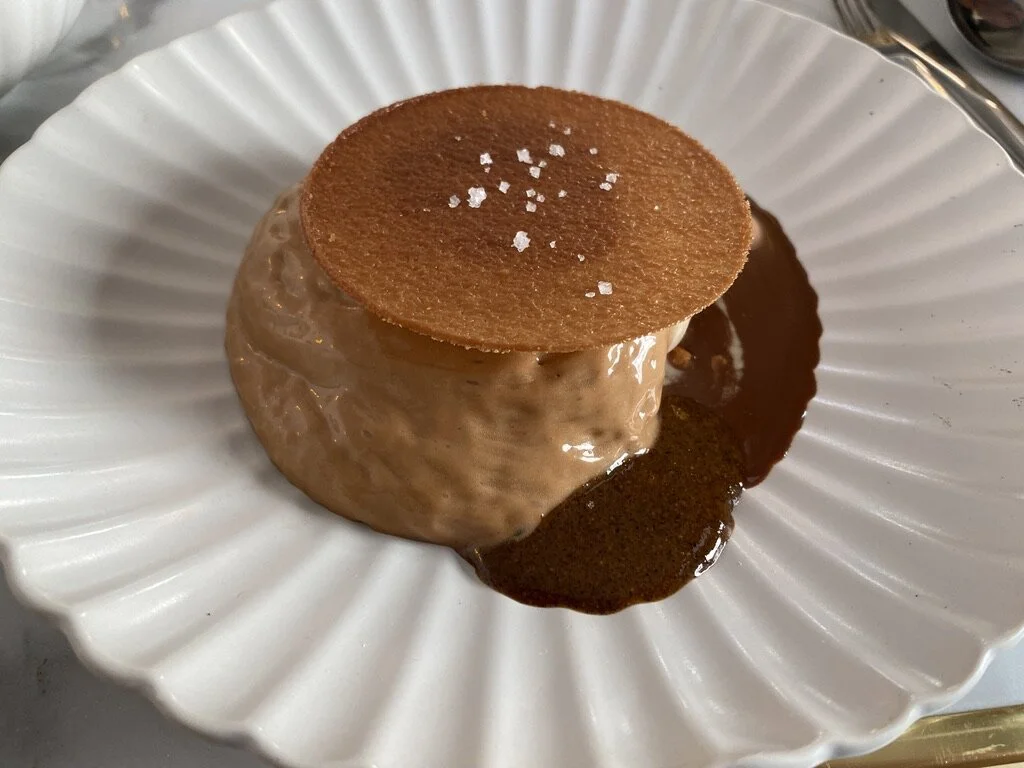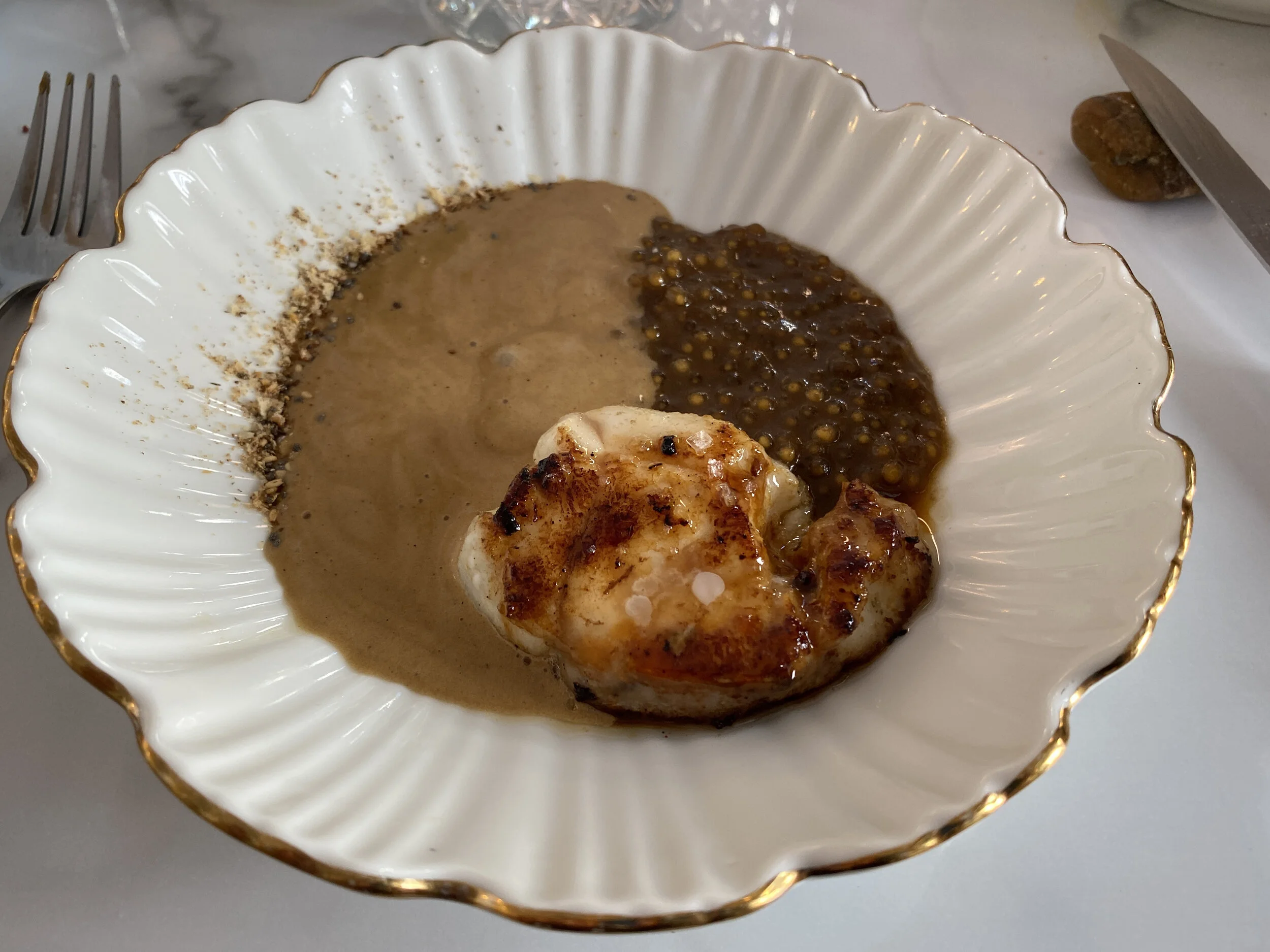J’ai rarement l’occasion de manger de la lotte, elle était parfaite ! L’alliance oignon et tonka étonnante et bien trouvée. Après un plat un peu “bling bling” dans la présentation, on revient à du plus classique, plus rassurant, plus “savory” et c’est très bon.