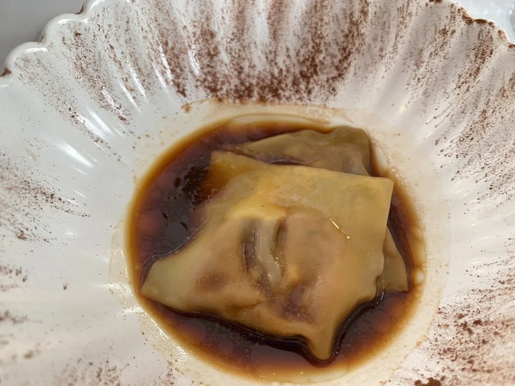 Ouah ! J’ai adoré ce dessert (les ravioles sont servies en même temps que la glace et la crème en dessous). Au début on met les ravioles dans la bouche et on se dit “ouf, ca a que le goût du café hyper fort” (en plus je ne bois pas de café donc double choc pour moi) et ensuite on sent le praliné à l’intérieur et c’est excellent.