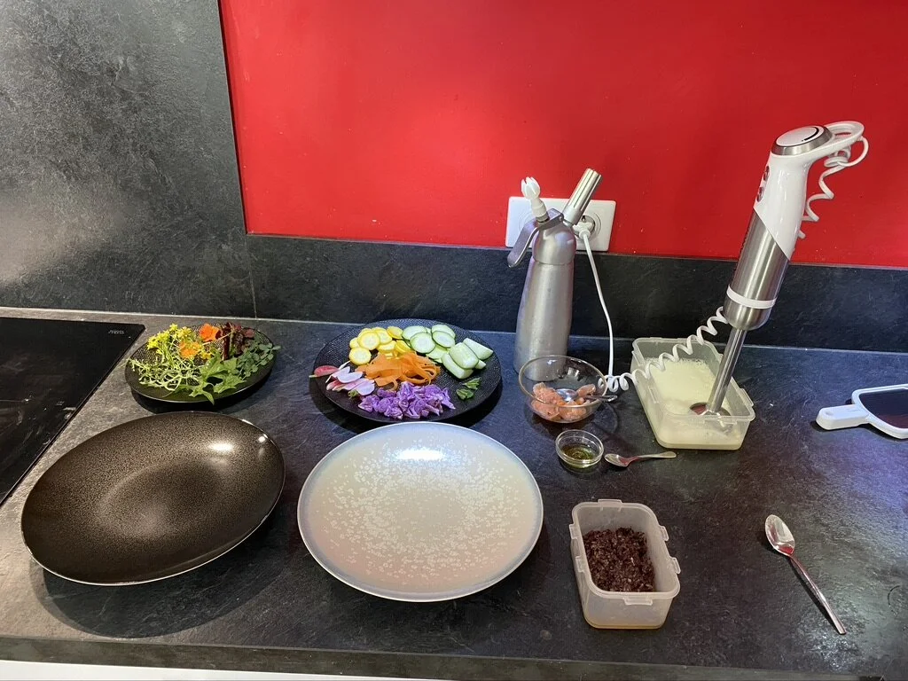 Comme vous pouvez le voir c’est assez technique. Un siphon de roquette, une émulsion à la lécithine de soja… bref si c’est votre première recette, commencez par quelque chose de plus facile.